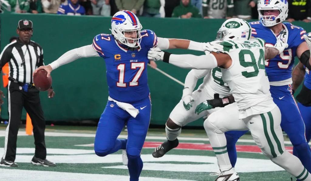 Garrett Wilson finished with seven catches for 66 yards and a touchdown reception.Bills quarterback Josh Allen continued his MVP campaign with another solid game. He completed 16-of-27 passes for 182 yards and two touchdowns before Mitchell Trubisky replaced him with a significant lead.