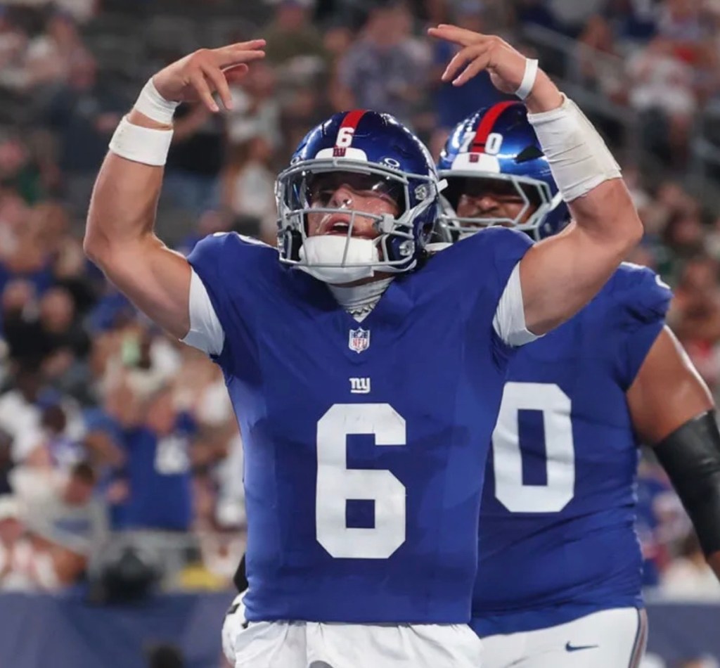 Rookie quarterback Jaxson Dart piloted the New York Giants to a 34-17 NFL victory over the Philadelphia Eagles on Thursday, handing the reigning Super Bowl champions a second straight NFL defeat.